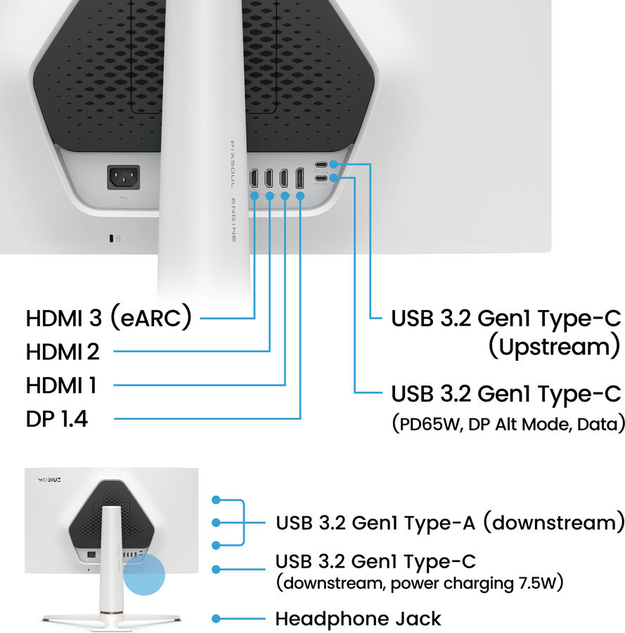 - USB-C (65W Power Delivery)